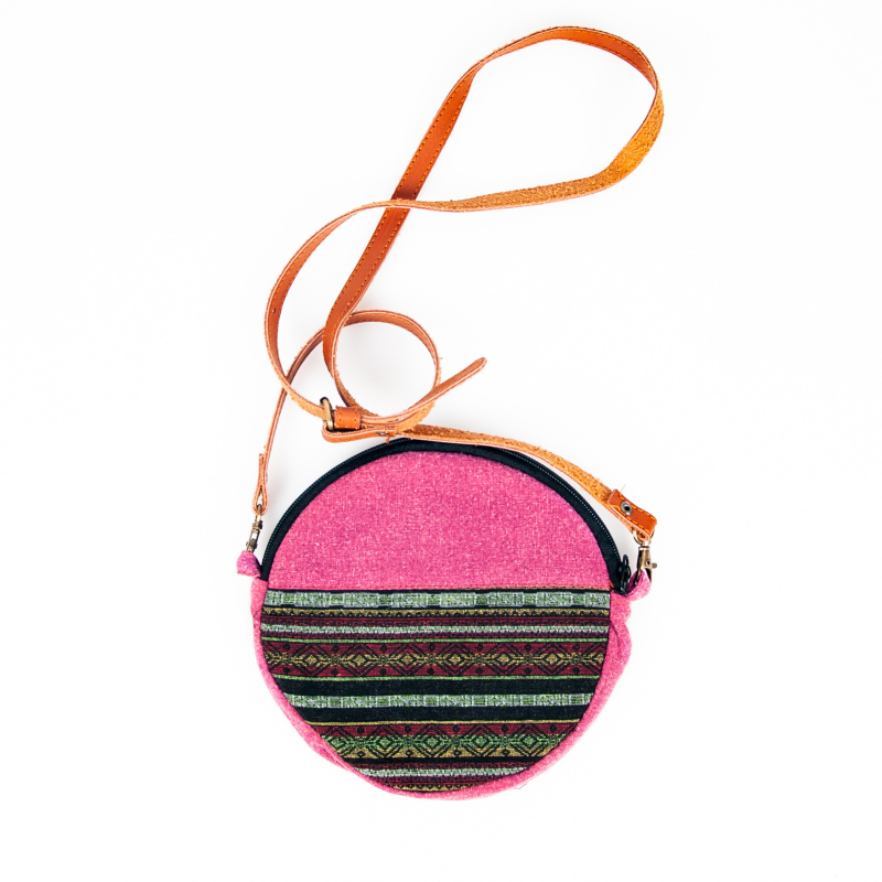 Klíče, peníze, balíček kapesníků, doklady a další drobné věci, bez kterých se neobejdete při jakékoliv procházce nebo celodenním výletě. To vše se vám pohodlně vejde do bavlněné tašky Kanok Round s koženým popruhem a parádním vzorováním.