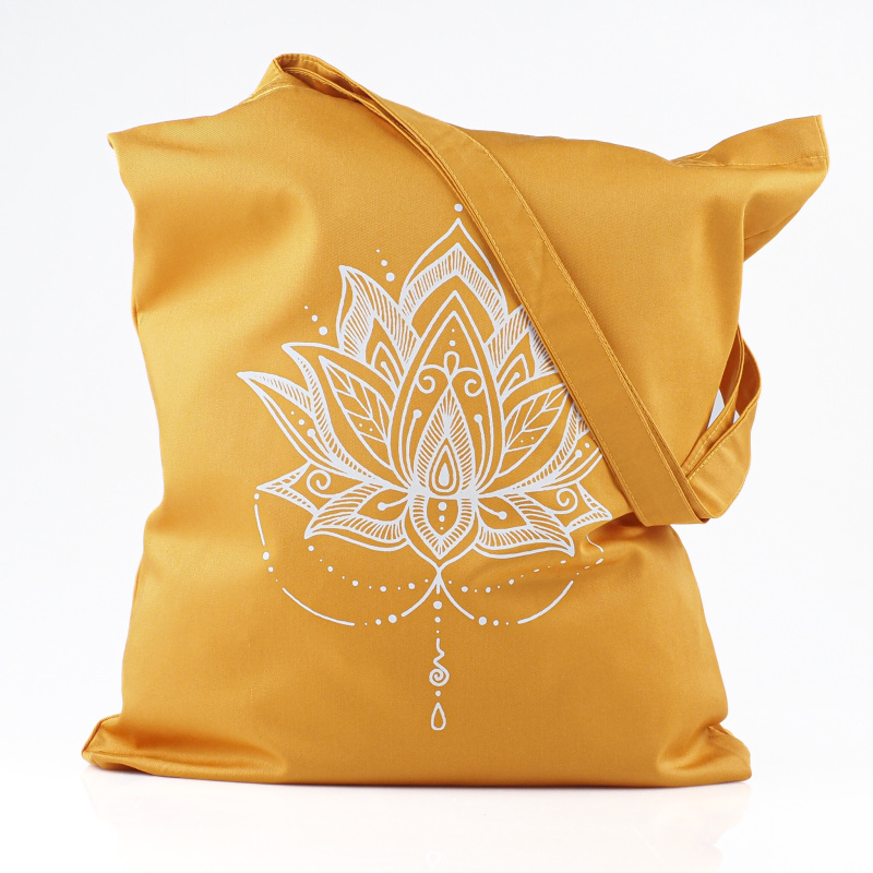Taška je zdobena krásným potiskem lotosového květu a její nošení vám bude přinášet radost každý den.