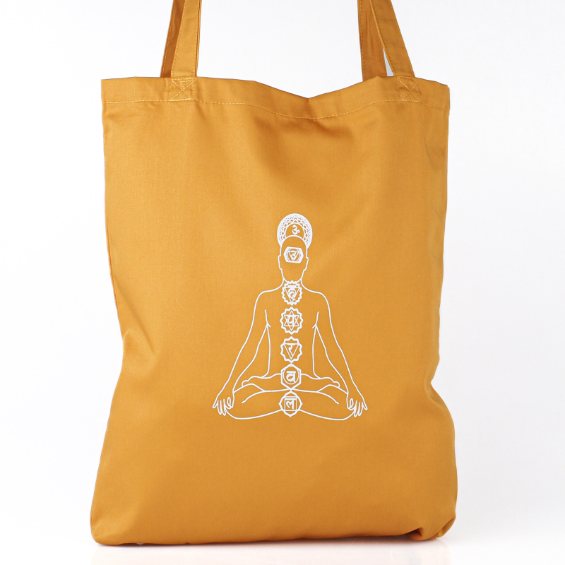 Praktická taška z jednovrstvého pevného a na dotek velmi příjemného materiálu s dostatečně dlouhými uchy umožňujícími pohodlné nošení přes rameno je velmi prostorná a hravě pojme všechny vaše nezbytnosti nebo i nákup. Vnitřní prostor není členěn na kapsy, taška tedy pojme i větší předměty, je bez uzavírání. Taška je zdobena krásným potiskem sedmi čaker a její nošení vám bude přinášet radost každý den.