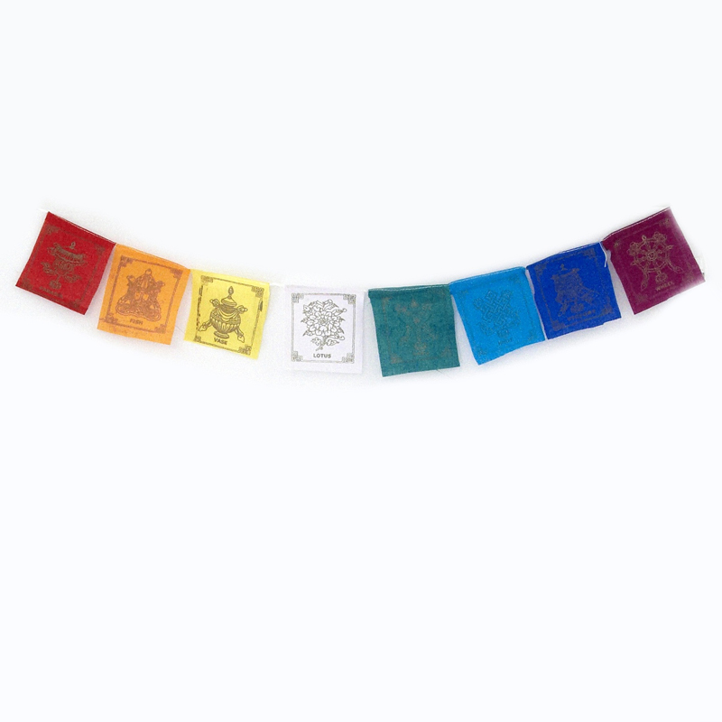 Popis produktu Tibetské modlitební vlaječky v1.2 Eight Auspicious 08 x 10 cm 8 ks