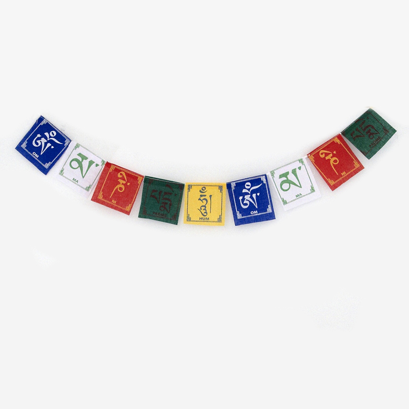 Tibetské modlitební praporky mají 5 různých barev, které zastupují 5 elementů země. Červená barva - oheň, zelená - dřevo, žlutá - země, modrá - voda, bílá - kov. Každý praporek nese buddhovo učení (mantry a sútry) a vyobrazení Om Mani Padme Hum. Nejznámnější mantra tibetského buddhismu, při jejímž recitování dochází k naprostému zklidnění mysli.