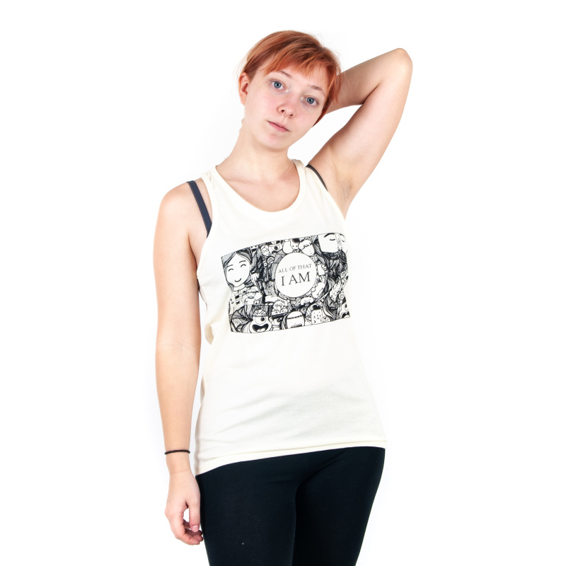 Dámské tílko s potiskem a pozitivní mantrou I AM ALL OF THAT v béžové barvě, velikost M