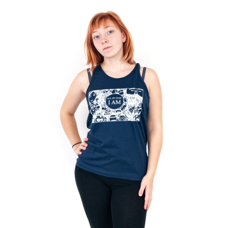 Dámské tílko s potiskem a pozitivní mantrou I AM ALL OF THAT v modré barvě, velikost XL