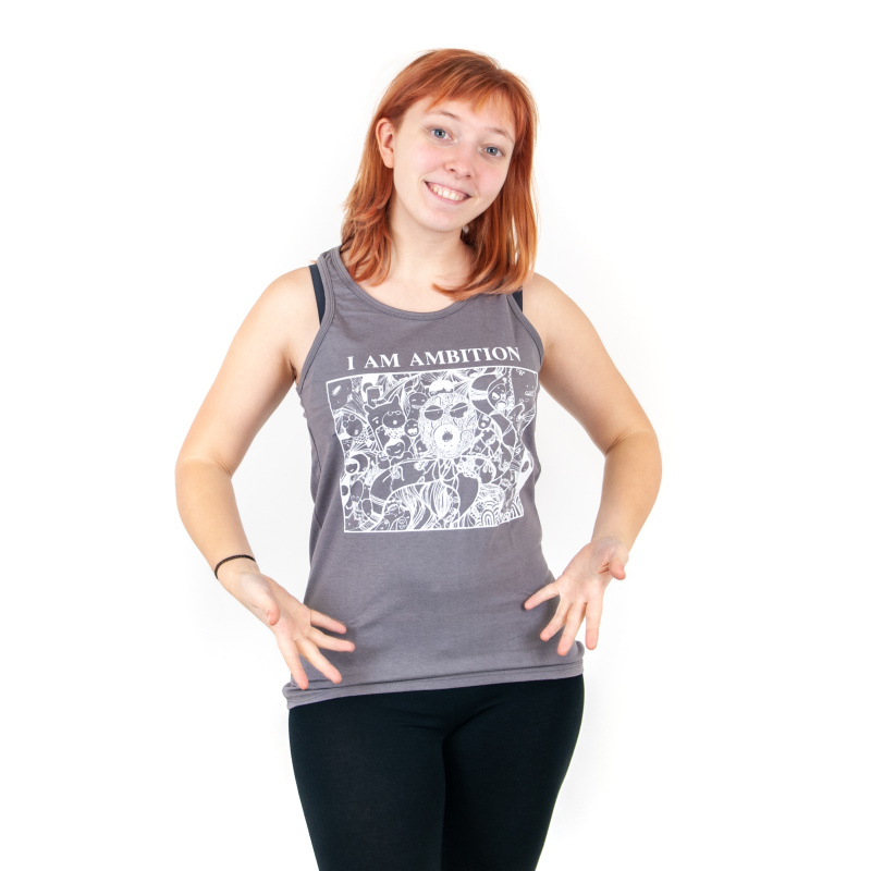 Dámské tílko s potiskem a pozitivní mantrou I AM AMBITION v šedé barvě, velikost M