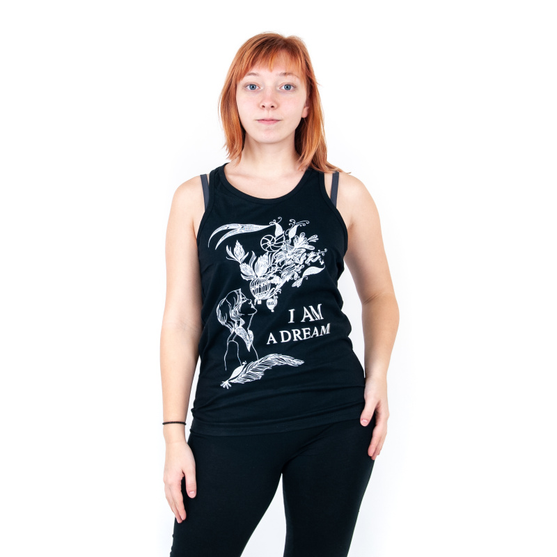 Dámské tílko s potiskem a pozitivní mantrou I AM A DREAM v černé barvě, velikost L