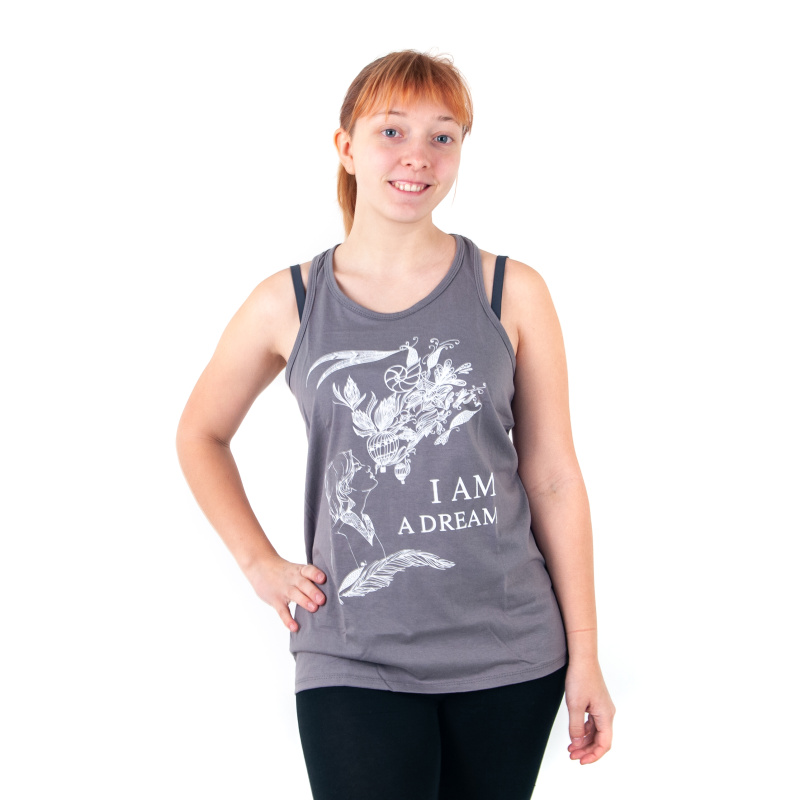 Dámské tílko s potiskem a pozitivní mantrou I AM A DREAM v šedé barvě, velikost L