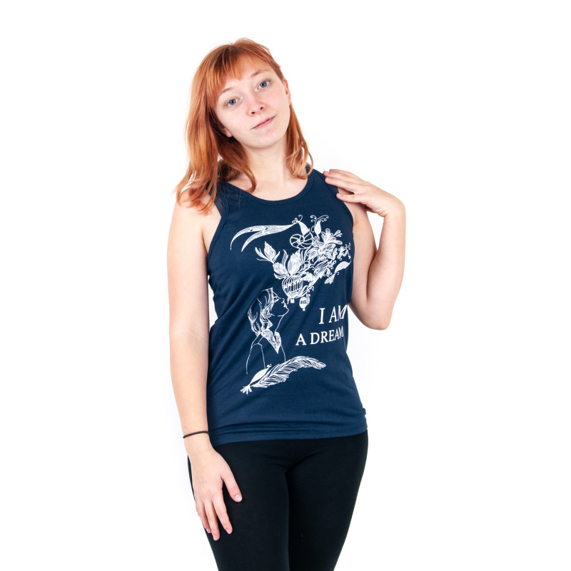 Dámské tílko s potiskem a pozitivní mantrou I AM A DREAM v modré barvě, velikost M