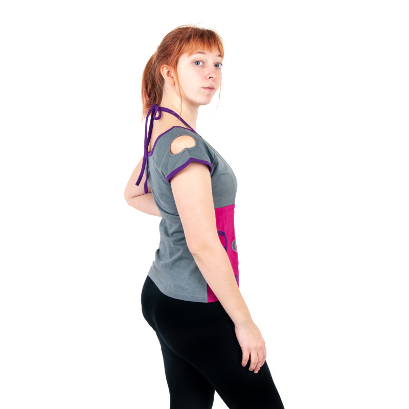 Bavlněný dámský top s motivy kruhů a šňůrkami za krk, Bamboo's 08 Léto 2014, velikost L
