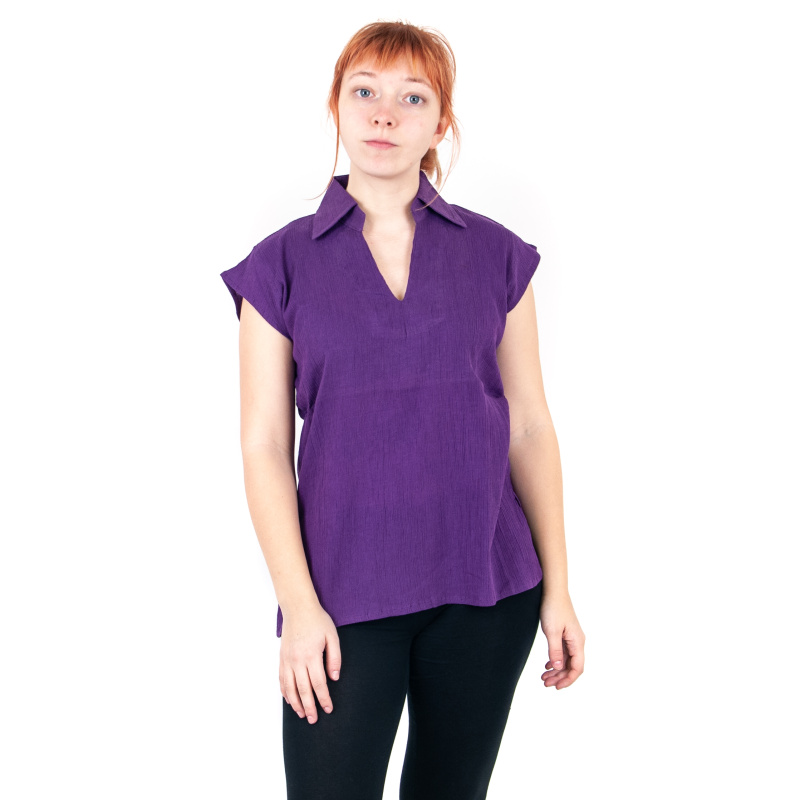 Stylová a příjemná bavlněná top halenka Leona s rozparky, velikost M, barva fialová