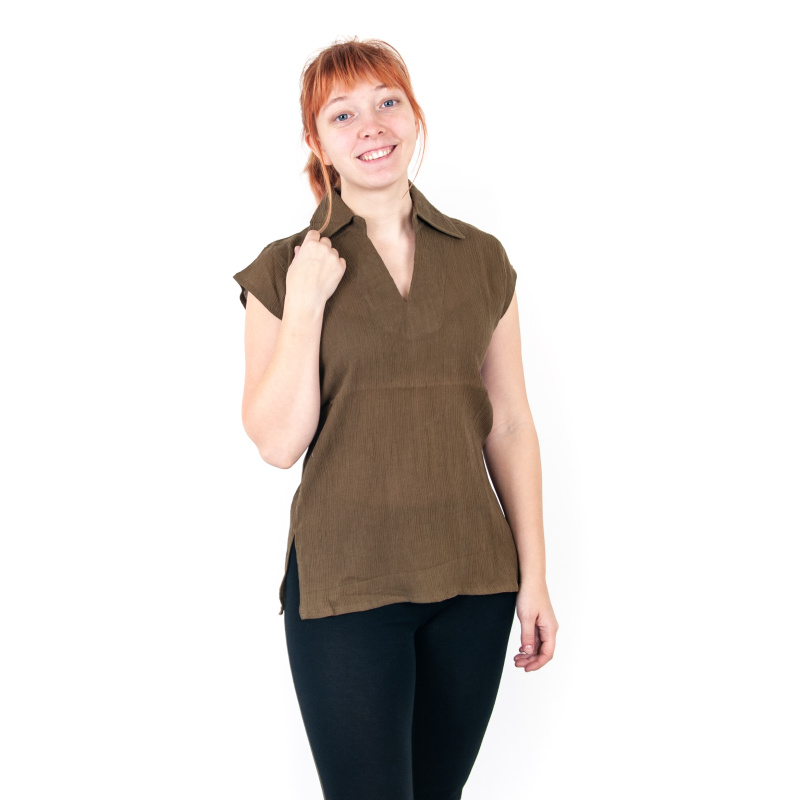 Stylová a příjemná bavlněná top halenka Leona s rozparky, velikost M, barva khaki