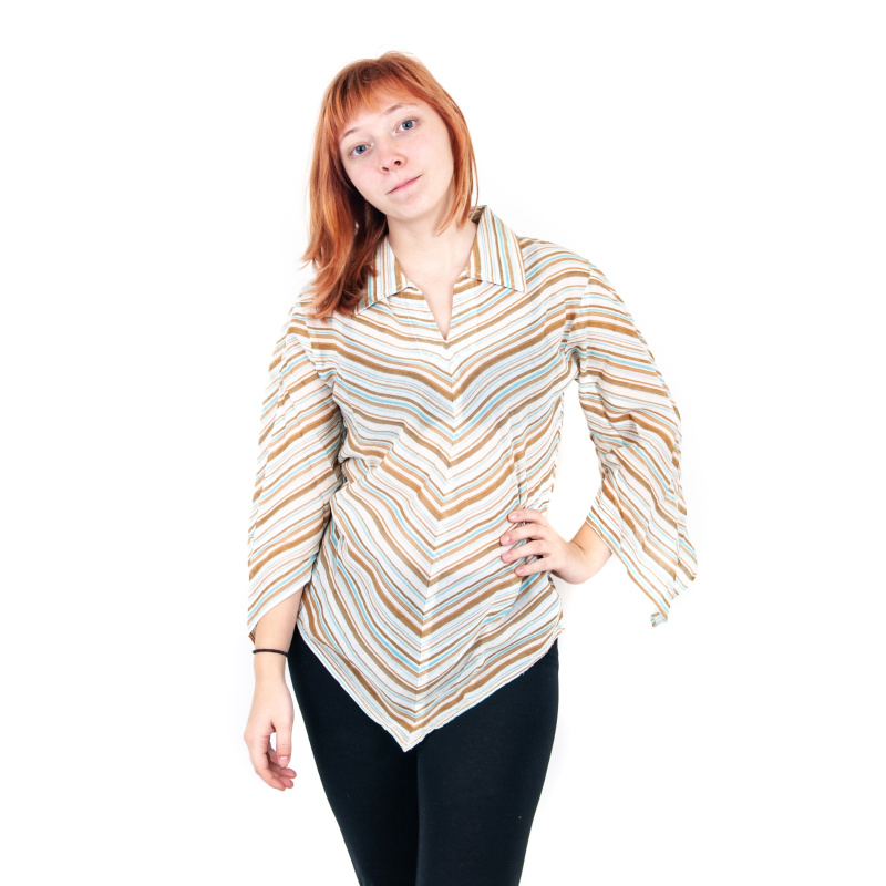 Elegantní halenka s rozšířenými tříčtvrtečními rukávy a límečkem se stane oblíbeným kouskem ve vašem šatníku. Jemná bavlněná tkanina, ze které je zhotovená, je ideální pro horké letní dny a zároveň poskytuje pocit pohodlí.