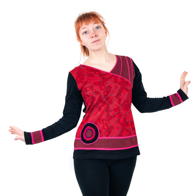 Top se zajímavými vzory a dlouhým rukávem Joy 02 v červené barvě, velikost M