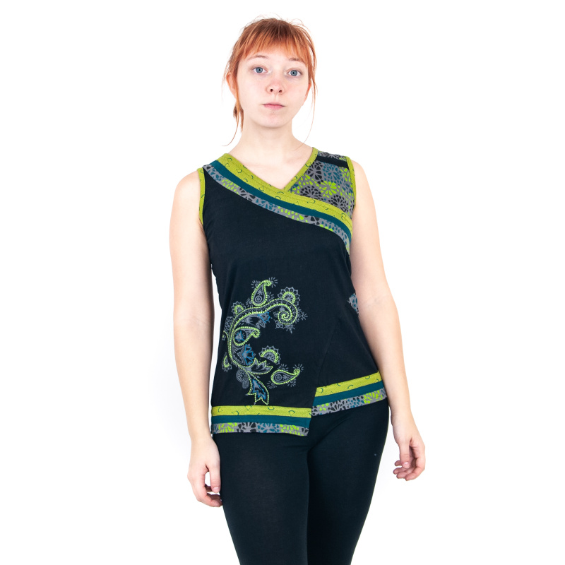 Letní top bez rukávu s květinovými vzory Joy 05 ve světle zelené barvě, velikost M