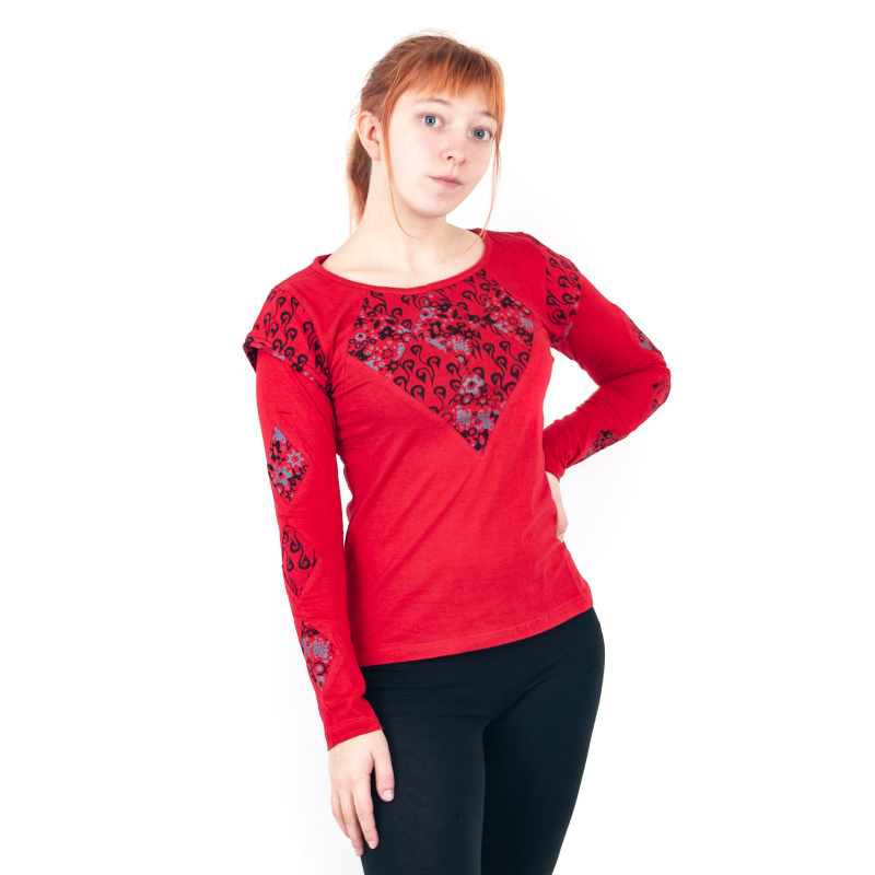 Top se zajímavými vzory a dlouhým rukávem Joy 07 v červené barvě, velikost XL