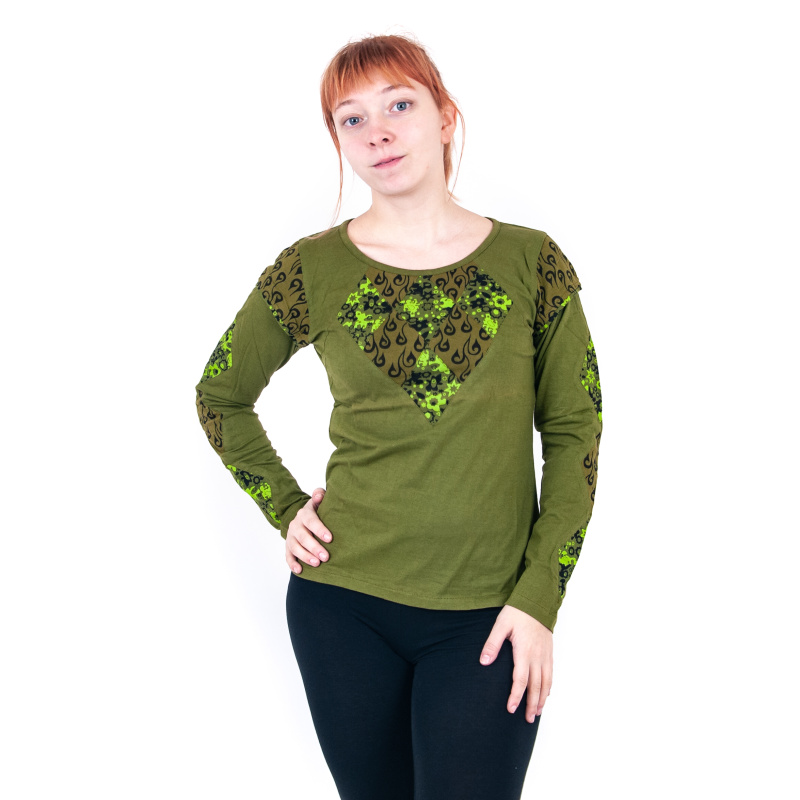 Top se zajímavými vzory a dlouhým rukávem Joy 07 v khaki barvě, velikost XL