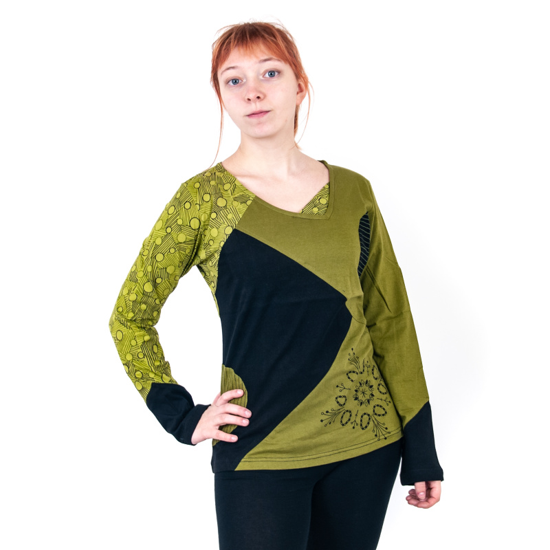 Top se zajímavým střihem a dlouhým rukávem Joy 11 v zelené barvě, velikost M