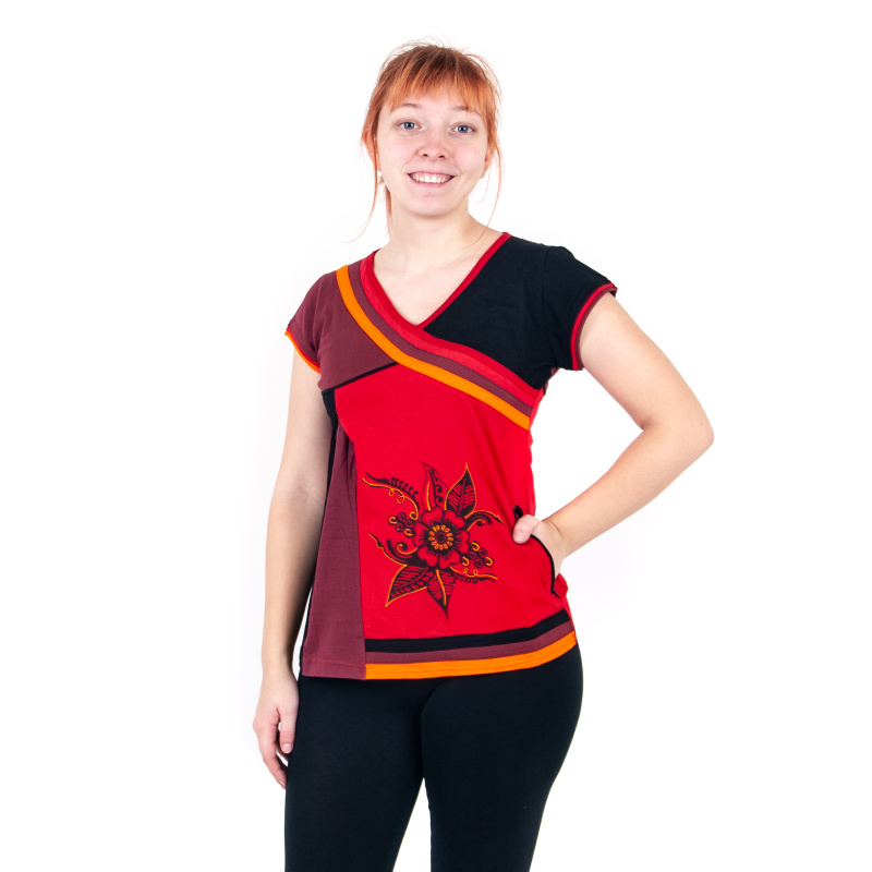 Červený top s květinovým motivem a malou kapsičkou na zip Joy 12, velikost M