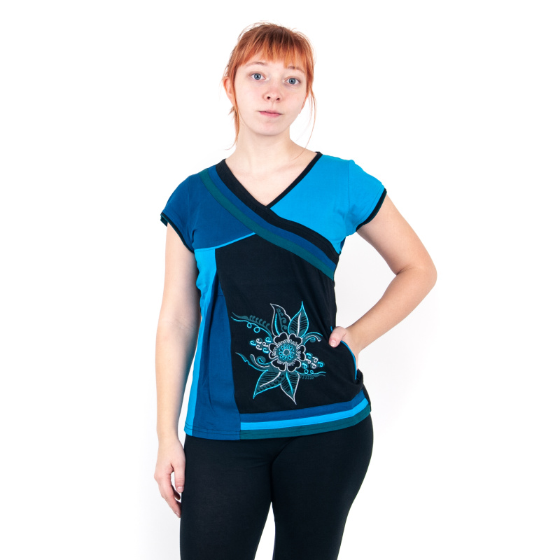 Tyrkysový top s květinovým motivem a malou kapsičkou na zip Joy 12, velikost M
