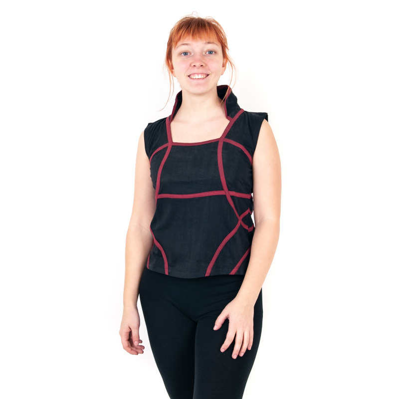 Velmi elegantní dámské tričko se zdviženým límečkem, velikost M černá vínová