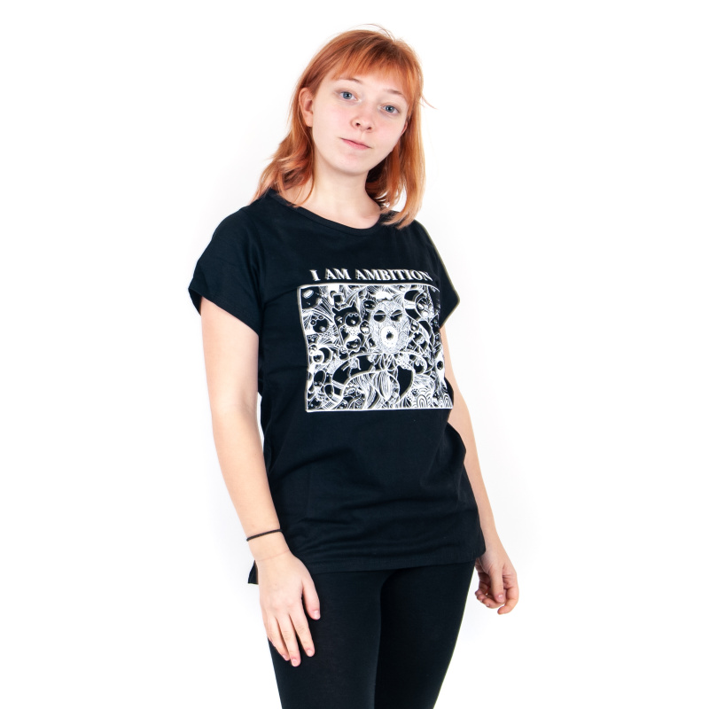 Dámské tričko s potiskem a pozitivní mantrou I AM AMBITION v černé barvě, velikost L