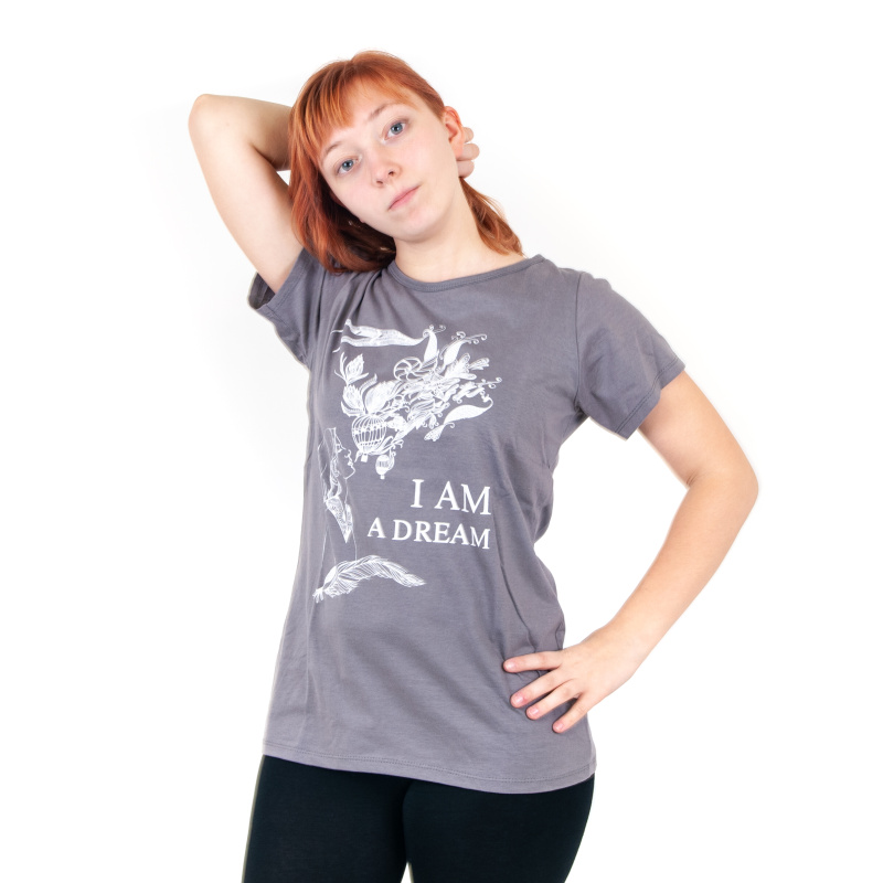 Dámské tričko s potiskem a pozitivní mantrou I AM A DREAM v šedé barvě, velikost L