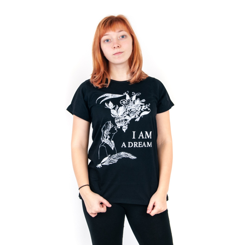 Dámské tričko s potiskem a pozitivní mantrou I AM A DREAM v černé barvě, velikost M