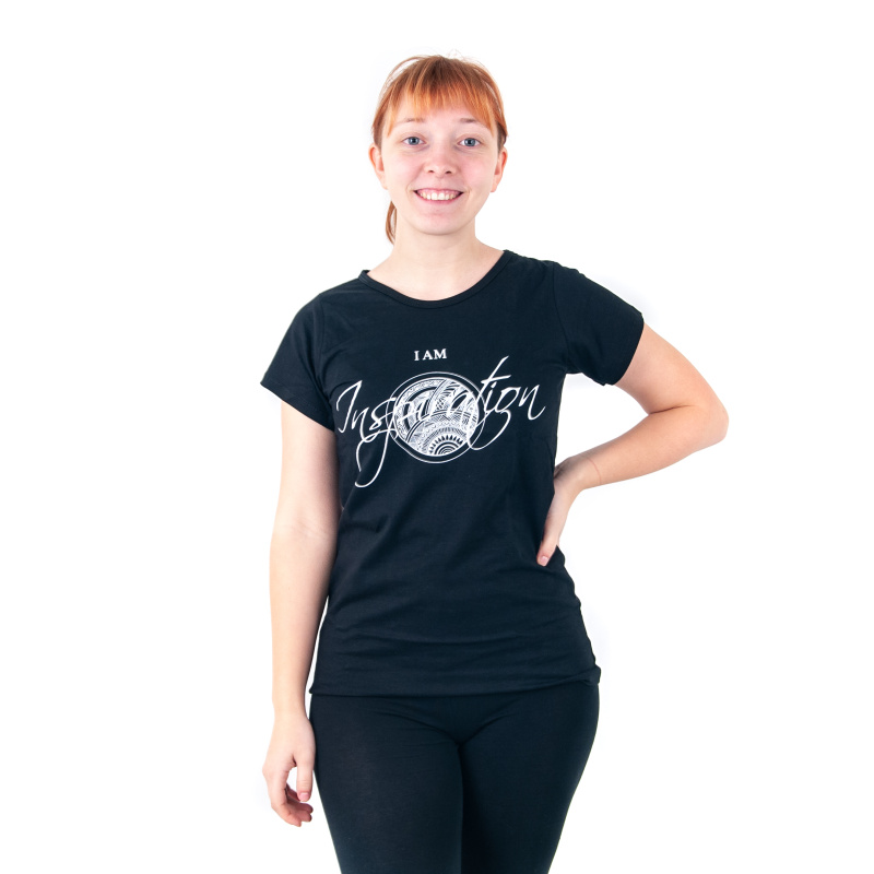 Dámské tričko s potiskem a pozitivní mantrou I AM INSPIRATION v černé barvě, velikost M