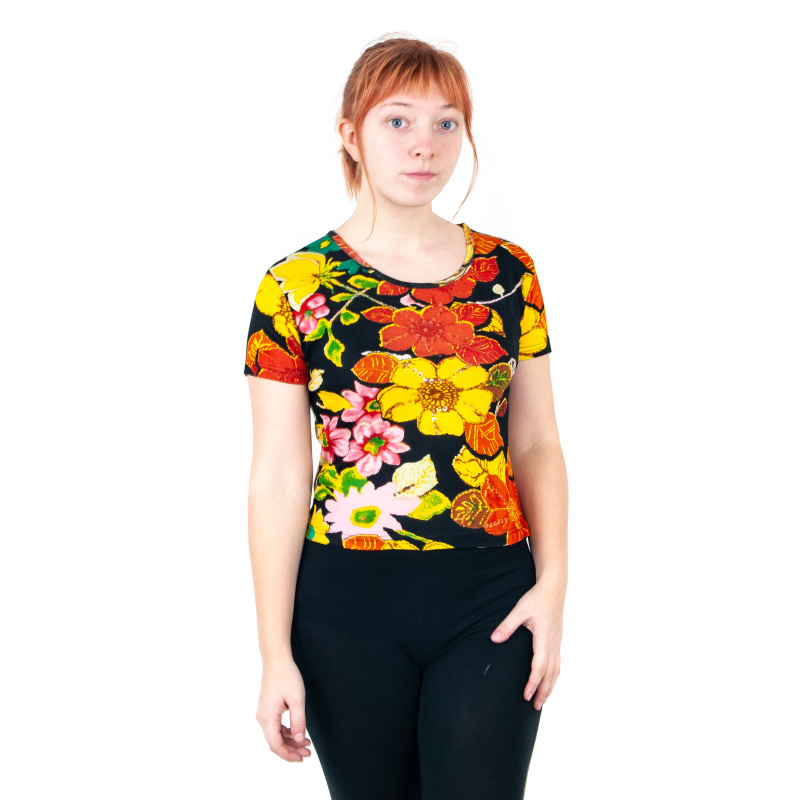 Dámské tričko s krátkým rukávem, květinové vzory, různé velikosti