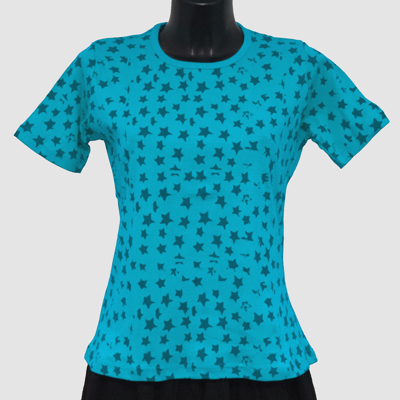 Dámské tričko s populárním hvězdnatým vzorem, velikost L, barva tyrkysová