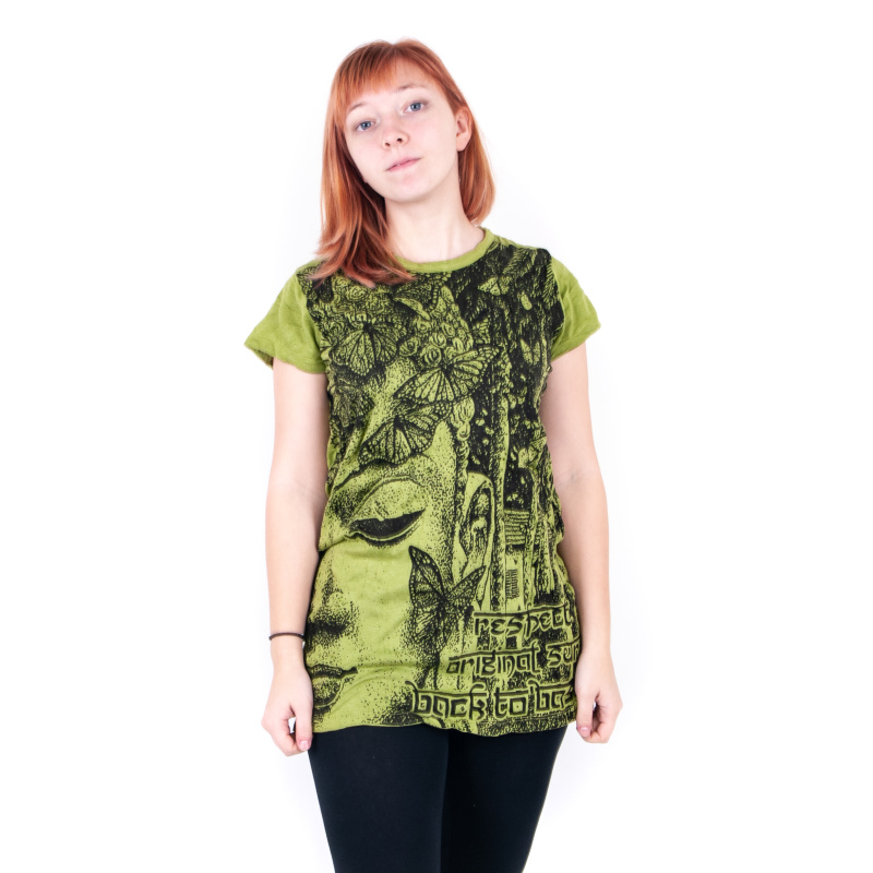 Dámské bavlněné tričko s potiskem SURE Butterfly Buddha v zelené barvě, velikost L
