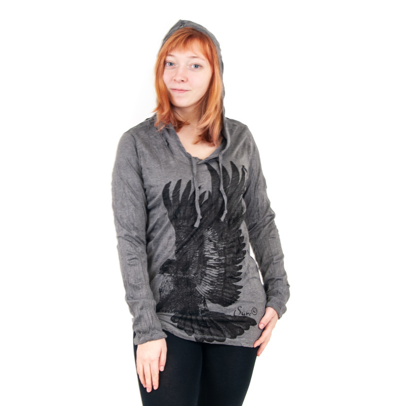 Dámské bavlněné tričko s dlouhým rukávem a potiskem SURE Eagle v šedé barvě, velikost M