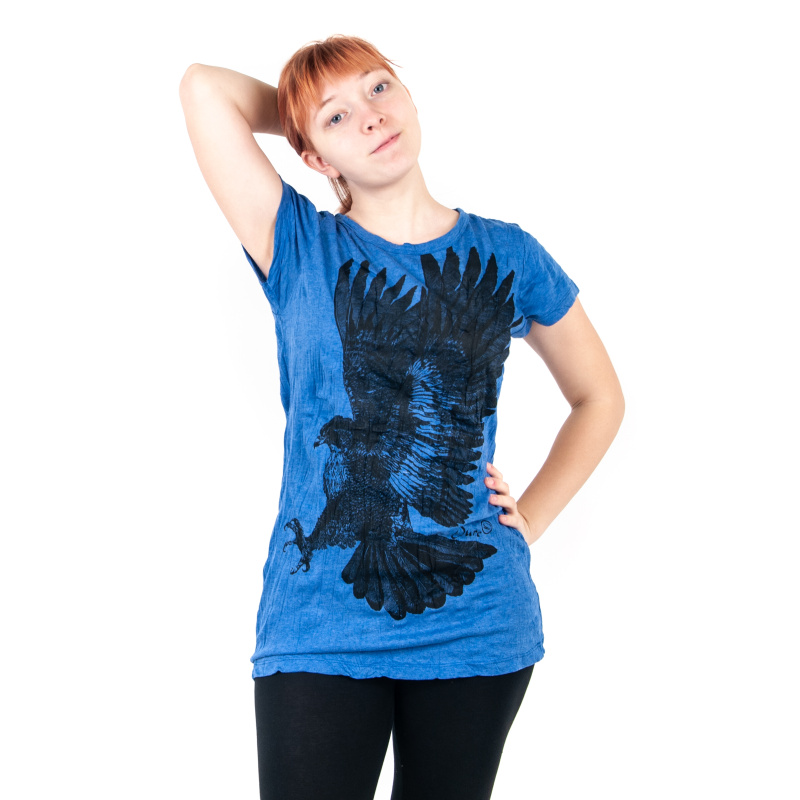 Dámské bavlněné tričko s potiskem SURE Eagle v modré barvě, velikost S