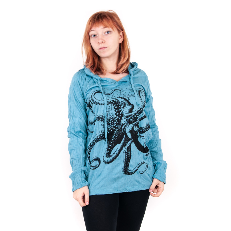 Dámské bavlněné tričko s dlouhým rukávem a potiskem SURE Octopus v tyrkysové barvě, velikost M