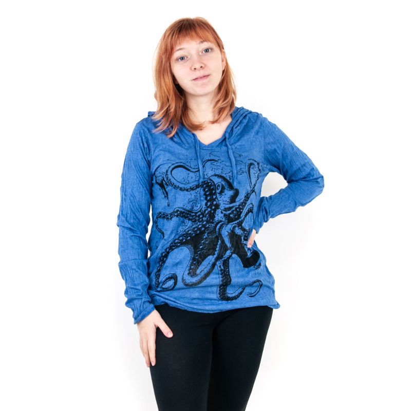 Dámské bavlněné tričko s dlouhým rukávem a potiskem SURE Octopus v modré barvě, velikost S