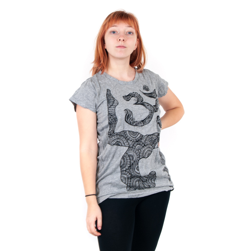 Dámské bavlněné tričko s potiskem SURE Yoga Ohm ve světle šedé barvě, velikost L