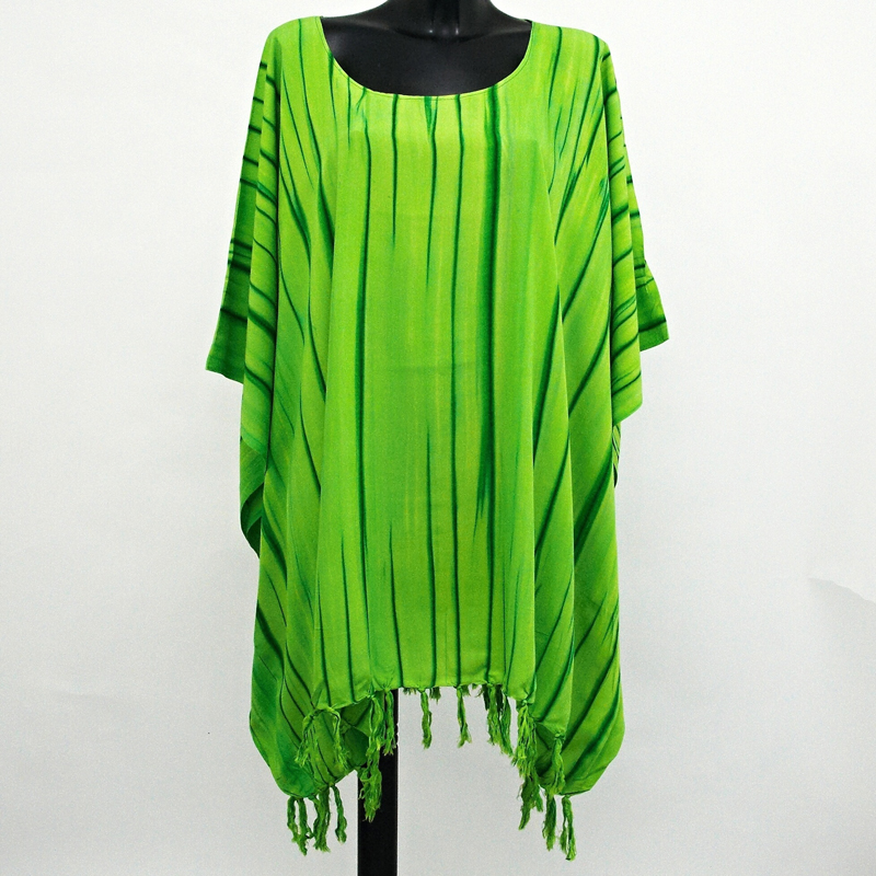 Batikované tuniky jsou ručně barveny - každá je tedy originál. Jednotlivé kusy se tudíž od sebe liší tvarem motivů i barevností.