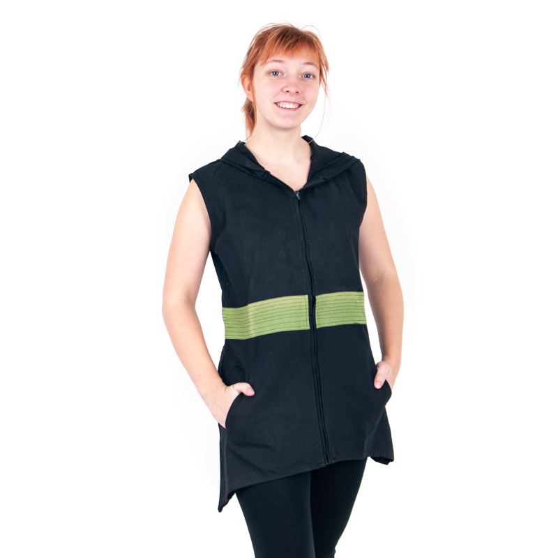 Dámská tunika "A" tvaru s cípy, které přesahují délku tuniky o 15cm. Zapínání je na zip, kapuce je do tvaru V.