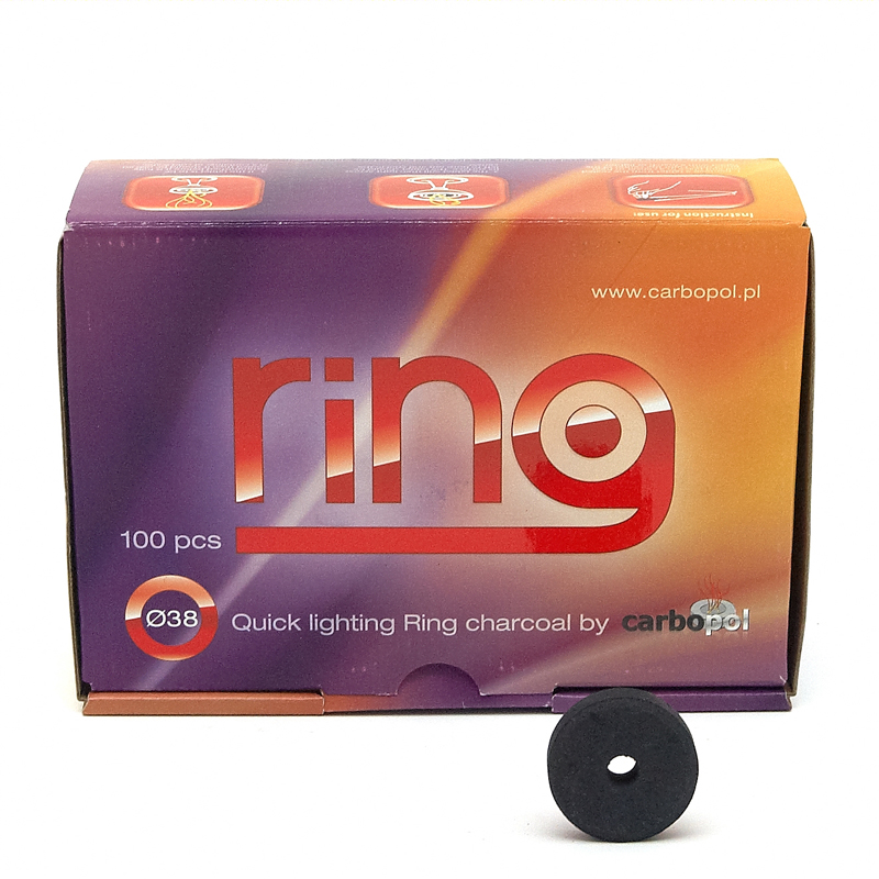 Uhlíky Carbopol Ring 38 mm jsou rychlozápalné, speciálně vytvarované uhlíky pro rychlejší a rovnoměrnější rozpalování. Uhlík se dokáže zapálit s použitím jediné zápalky. Tyto uhlíky mají vysokou výhřevnost, doba žhnutí při kouření vodní dýmky je přibližně 40 minut.