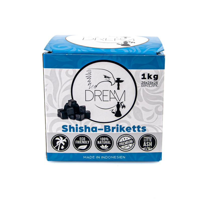 Přírodní kokosové uhlí pro kouření vodní dýmky nebo grilování Dream je vyrobeno z kokosových skořápek, které jsou zbytkovým produktem při výrobě kokosového oleje. Jedná se o 100% přírodní a ekologický produkt při jehož výrobě nebyly použity žádné chemické látky a nebyl pokácen jediný strom! Uhlí Dream krásně hoří bez obtěžujícího zápachu a kouře, má také vyšší výhřevnost (až 2x delší dobu hoření) nežli jiné běžné uhlí.