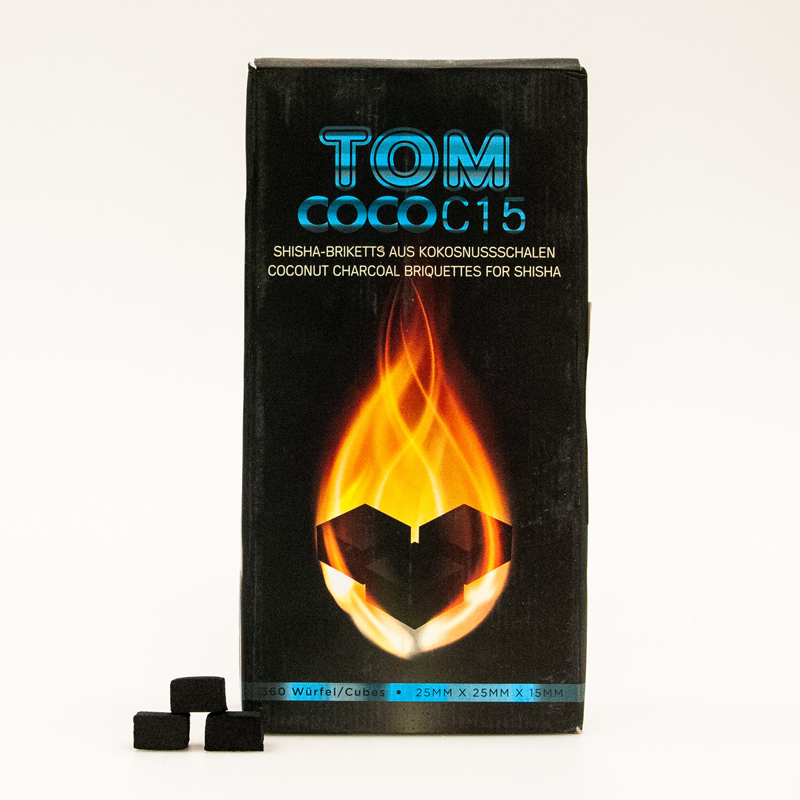 Přírodní kokosové uhlí pro kouření vodní dýmky nebo grilování Tom Coco je vyrobeno z kokosových skořápek, které jsou zbytkovým produktem při výrobě kokosového oleje. Jedná se o 100% přírodní a ekologický produkt při jehož výrobě nebyly použity žádné chemické látky a nebyl pokácen jediný strom! Uhlí Tom Coco krásně hoří bez obtěžujícího zápachu a kouře, má také vyšší výhřevnost (až 2x delší dobu hoření) nežli jiné běžné uhlí. Zůstatkový obsah popela je až o 80% nižší než u ostatních konvenčních uhlíků a činí v úhrnu pouze 3 % svého obsahu.