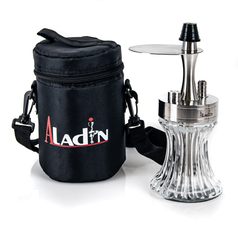Vodní dýmka do kapsy? Skoro! Aladin 2Go je rozhodně jednou z nejmenších a nejskladnějších dýmek na trhu. Pokud vaše klasická domácí dýmka není ideální pro cestování, ale přesto si rádi užíváte relax s dýmkou nejen doma, je Aladin 2Go tou správnou volbou. Snadno ji zabalíte do malé cestovní tašky a vezmete kamkoliv s sebou. Dýmka Aladin 2Go je vybavena diffusorem a tělo, spojené s vázou závitem, zajišťuje veškeré pohodlí.