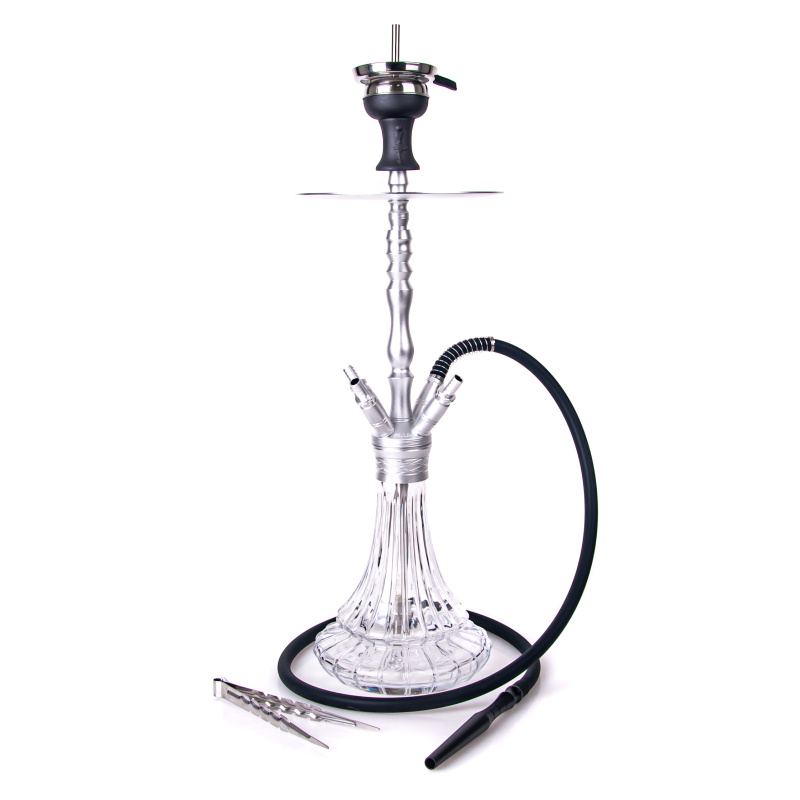 Aladin Alux M8 je čtyřšlauchová vodní dýmka, jejíž součástí je kromě jedné silikonové hadice s náustkem také keramická korunka s badchou a kleště na uhlíky. Tělo s vázou je spojeno vnitřním bajonetovým systémem Click, díky němuž se dýmka snadněji skládá a rozkládá. Sklo vázy vodní dýmky je nejen krásně zdobené ale také pořádně masivní, a dodává tak dýmce stabilitu na kterou se můžete bez obav spolehnout. Downstem (spodní trubka) je opatřen nastavitelným difusorem, umožňující ztišit bublání a zjemnit tah.