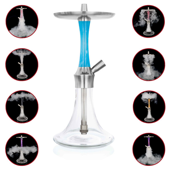 Popis produktu Vodní dýmka Aladin Epox 360 Silver Turquoise Flat
