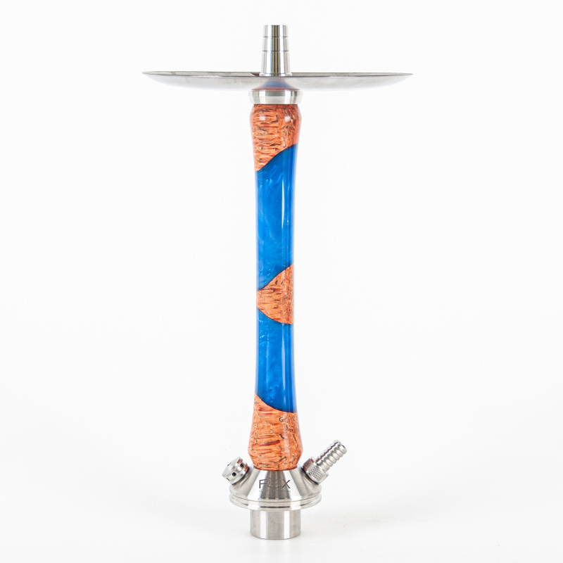 Vodní dýmka Wood 2.0 Hybrid ruské značky FOX vychází z modelu Wood 2.0, jejíž nerezové tělo pokrývá odnimatelný dřevěný návlek. Označení Hybrid odkazuje na návlek, který zde kombinuje různé druhy dřeva a akrylátovou pryskyřicí. Návleky jsou výsledkem ruční práce, což má za následek naprosto originální zdobení každého kusu.