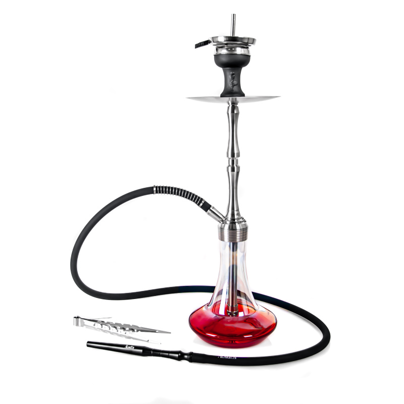 Vodní dýmka MVP Rocket Shiny Bottom Red je vyfrézovaná z pořádného kusu nerezové oceli, což napomáhá lepší stabilitě. Dýmka se jen tak nepřevrhne ani při neopatrné manipulaci. Downstem (spodní trubka) je opatřen nastavitelným difusorem, který zjemní tah a ztiší bublání. Dýmku doplňuje silikonová hadice soft touch s hebkým sametovým povrchem, která vyniká velice příjemným pocitem na omak. S černou hadicí ladí černý hliníkový náustek. A na vrcholu vodní dýmky je keramická korunka Optimus (bez přídavných kroužků) s badchou.