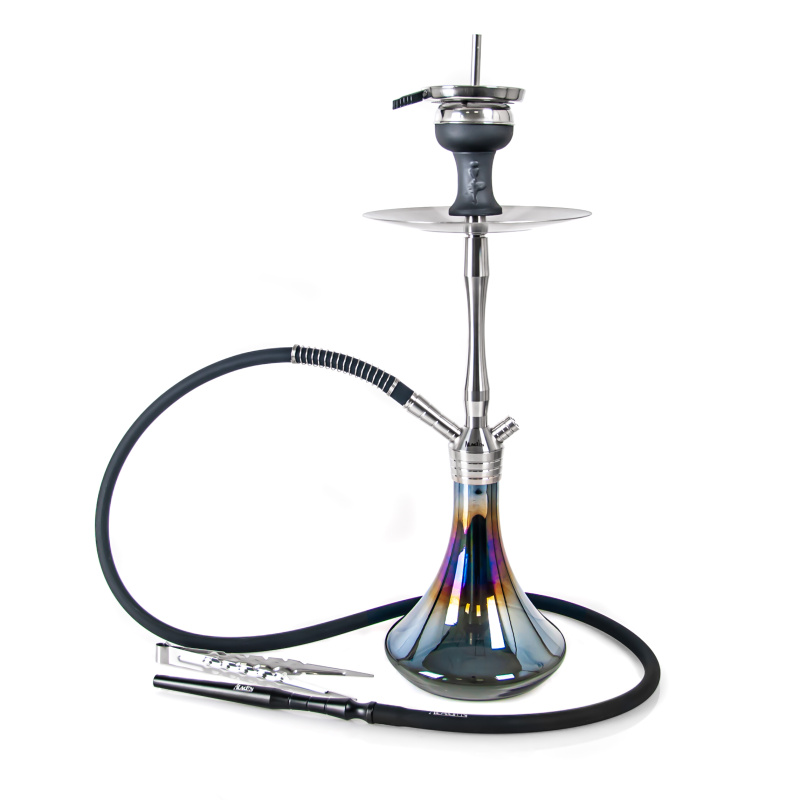 Vodní dýmka MVP460 M1 V1 Rainbow je vyfrézovaná z pořádného kusu nerezové oceli, což napomáhá lepší stabilitě. Dýmka se jen tak nepřevrhne ani při neopatrné manipulaci. Duhový opalizující povrch vázy dýmce propůjčje jemný nádech elegance a luxusu. Downstem (spodní trubka) je opatřen nastavitelným difusorem, který zjemní tah a ztiší bublání. Dýmku doplňuje silikonová hadice soft touch s hebkým sametovým povrchem, která vyniká velice příjemným pocitem na omak. S černou hadicí ladí černý hliníkový náustek. A na vrcholu vodní dýmky je keramická korunka Optimus (bez přídavných kroužků) s badchou.