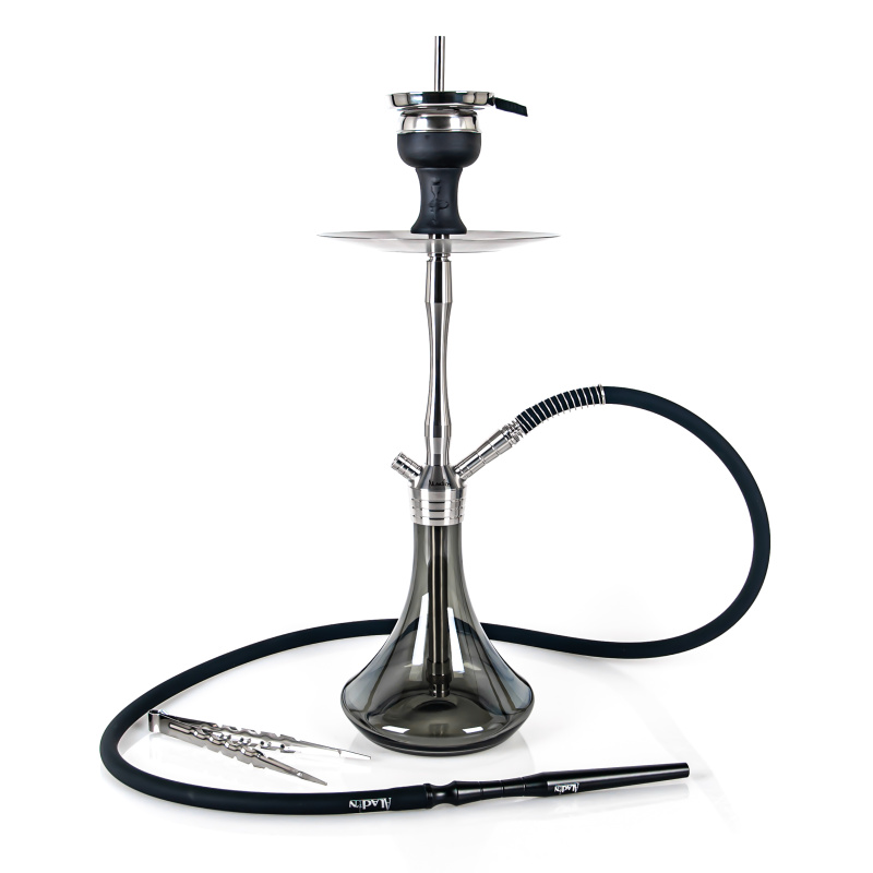 Vodní dýmka MVP460 M1 V1 Shiny Black je vyfrézovaná z pořádného kusu nerezové oceli, což napomáhá lepší stabilitě. Dýmka se jen tak nepřevrhne ani při neopatrné manipulaci. Downstem (spodní trubka) je opatřen nastavitelným difusorem, který zjemní tah a ztiší bublání. Dýmku doplňuje silikonová hadice soft touch s hebkým sametovým povrchem, která vyniká velice příjemným pocitem na omak. S černou hadicí ladí černý hliníkový náustek. A na vrcholu vodní dýmky je keramická korunka Optimus (bez přídavných kroužků) s badchou.