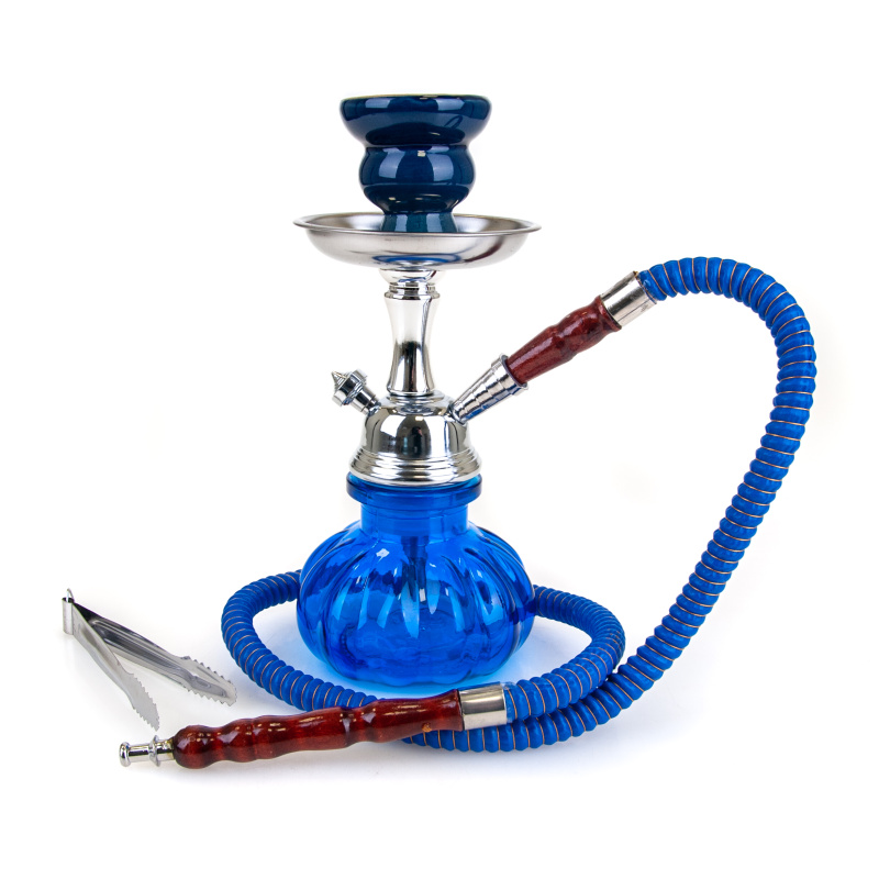 Vodní dýmka Dutch Pumpkin 24 cm, v modré barvě. K dýmce je dodáváno veškeré potřebné příslušenství: korunka, hadice, těsnění, kleště.