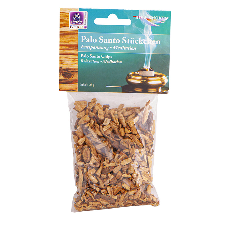 Strom Palo Santo je "svaté dřevo" Jižní Ameriky rostoucí převážně v Peru. Peruánci věří, že má velmi mocné účinky. Palo Santo je bohaté na silně aromatickou pryskyřici s nádhernou hřejivě sladkou vůní s nádechem kokosu. U starověkých andských národů bylo Palo Santo klíčovou součástí náboženských slavností a rituálů. Pálí se k prohloubení duchovních prožitků při meditaci, pomáhá odhánět negativní energii a rozpouští hněv. Uklidňuje proud myšlenek, uvolňuje tělo.