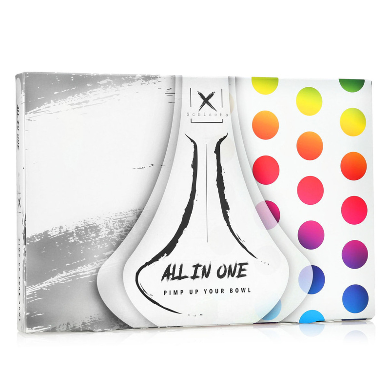 Průsvitné barvičky, třytky či pastelové barvy. Taky jste z těch co je potřebují prostě všechny a nejlépe je ještě mezi sebou míchat a vytvářet další a další barevné odstíny? Právě pro vás je set XSchischa All in One, který nabízí možnost vytvořit si vlastní odstíny barev, přidávat třpytky či vytvářet pastelové barvy. V závislosti na množství použitých barev s nimi můžete rozzářit až 250 dýmek, kterým dodáte ty správné barvy. Se správným způsobem použití vám pomůže návod v balení.